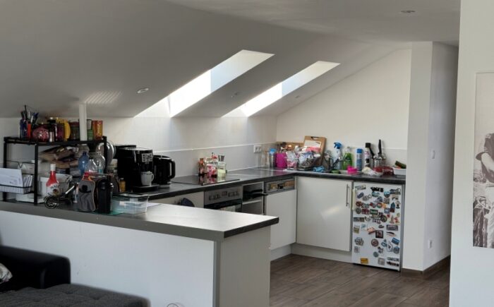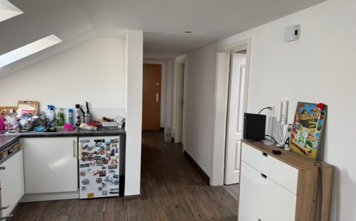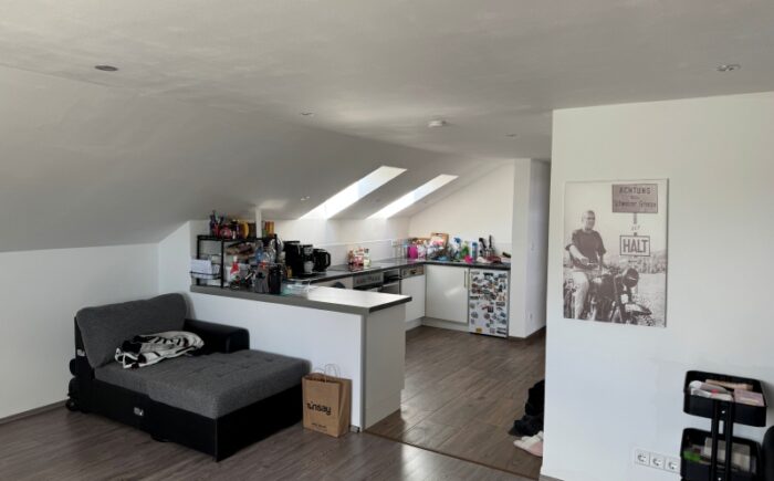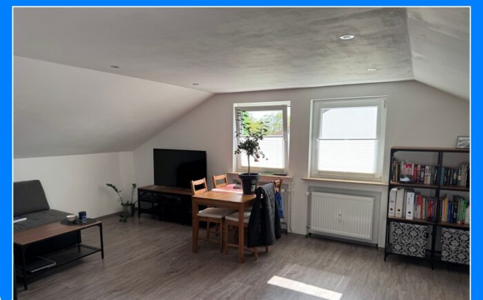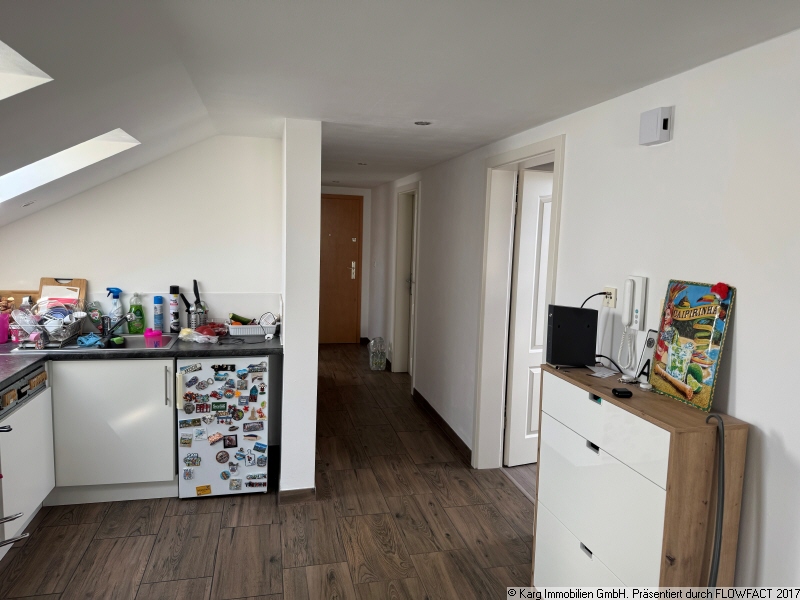 114.000,00 EUR Villingen-Schwenningen | DG-Wohnung | 48,78m² | 2 ZimmerSchöne, modernisierte 2 Zimmerwohnung in guter Wohnlage im Stadteil „Rinelen“. Die tolle Dachgeschosswohnung befindet sich in einem gepflegten Haus mit 10 Einheiten. Offen gehalten ist der Wohn/Ess/Kochbereich. Ein geräumiger Flur führt in das Schlafzimmer sowie das Badezimmer mit Dusche. Hier befindet sich auch der Waschmaschinenanschluß. Ebenso ist ein Abstellraum in der Wohnung integriert.