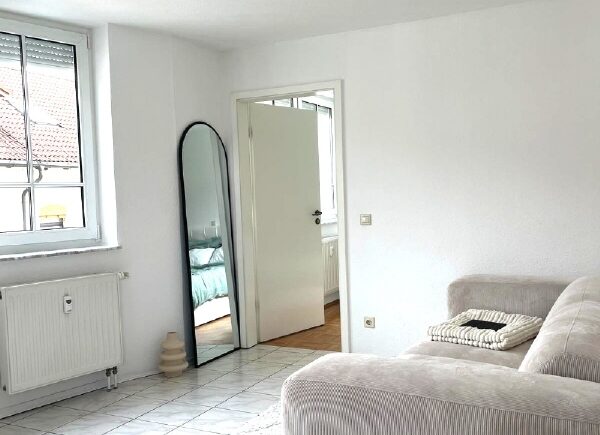 380,00 EUR Villingen-Schwenningen | DG-Wohnung | 36,00m² | 2 ZimmerGepflegte, kleine Singlewohnung im Herzen der Stadt. Offener Wohn/Ess/Kochbereich mit einer kleinen Singleküchenzeile. Geräumiges Schlafzimmer mit tollem Bodenbelag. Innenliegendes Badezimmer mit Dusche, Waschbecken und Toilette. Im UG befindet sich der Waschraum sowie der zur Wohnung gehörende Kellerraum. Ein Doppelparker ist Bestandteil der Immobilie.