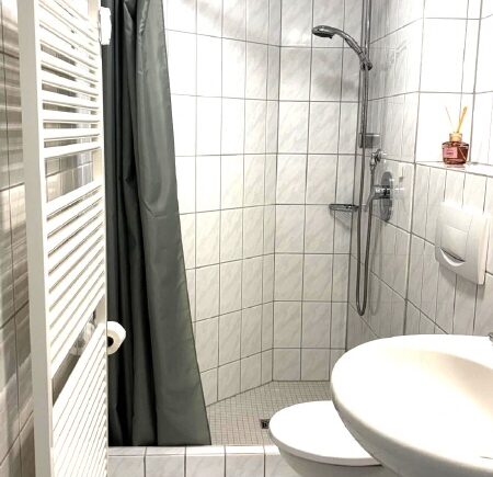 -Badezimmer mit Dusche