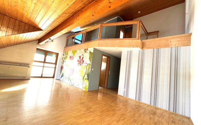 309.000,00 EUR Villingen-Schwenningen | DG-Wohnung | 98,00m² | 4 ZimmerSchöne und helle 4 Zimmer Maisonettewohnung mit sonnigem Balkon. Das geräumige Wohn/Esszimmer, mit Dachschräge, bietet viel Platz zum Verweilen. Von diesem Raum gelangt man auf den nach Süden ausgerichteten Balkon. Im unteren Teil der Wohnung befinden sich die abgetrennte Küche, das Tageslichtbad mit Badewanne, der gräumige Flur, ein Schlafzimmer sowie die separate Toilette.